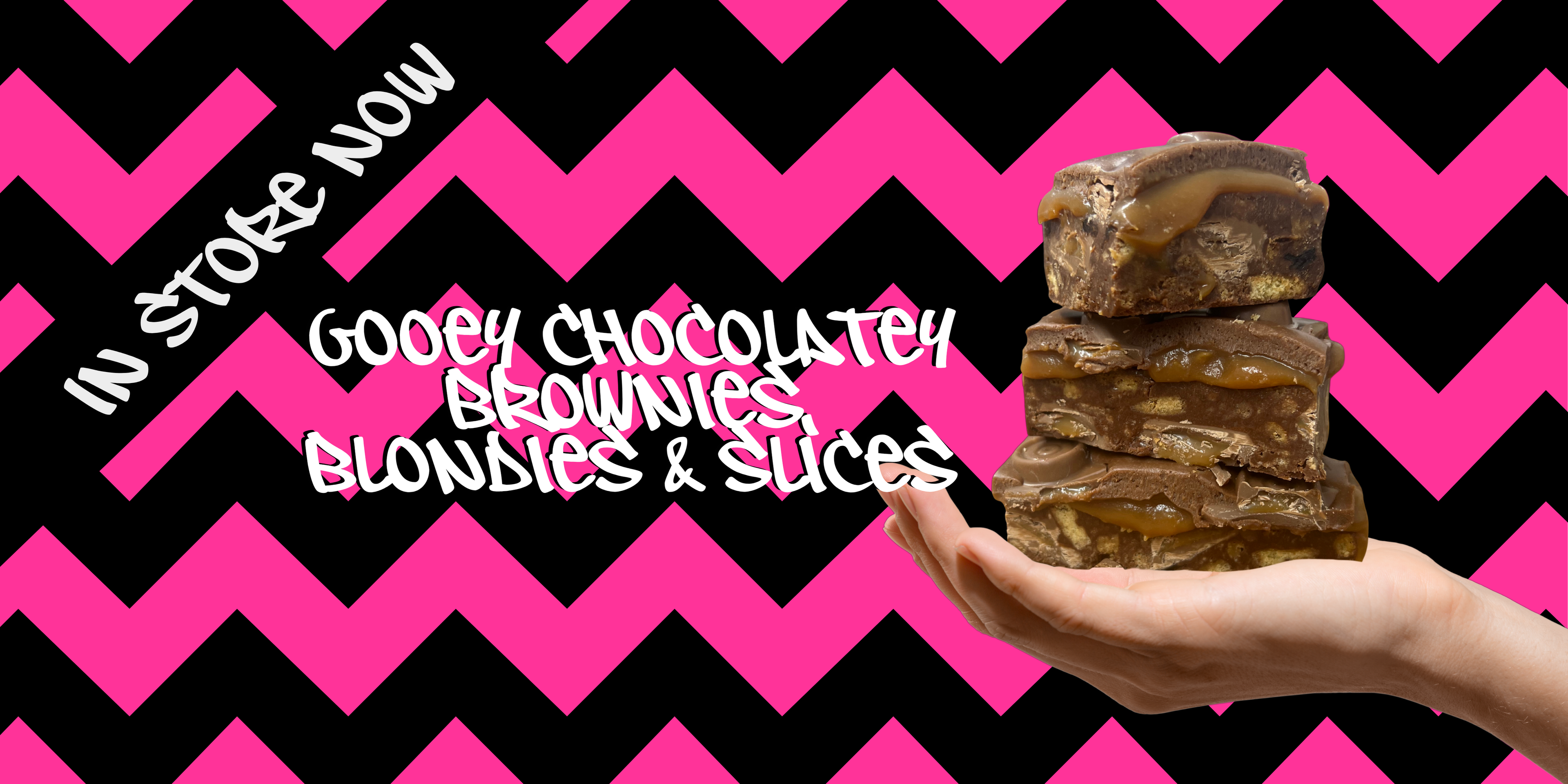 Our fudge brownie & blondie slabs made with Whittakers chocolate and loaded with your choice of filling, boxed up ready to be devoured.